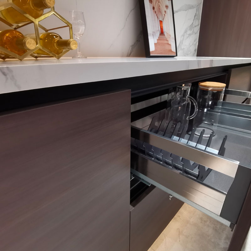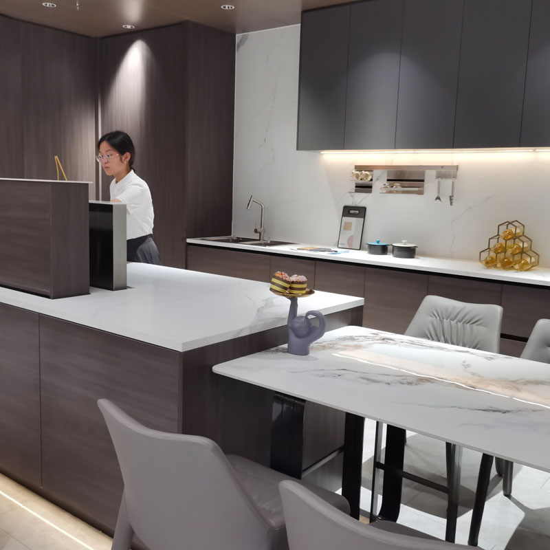 Qingdao Sinoya Co., Ltd. ยินดีที่จะให้คุณตู้ครัวไม้ลามิเนตตรงกับตู้ครัวกระจก หากต้องการปรับแต่ง ความลึกของตู้ด้านล่างมาตรฐานคือ 500-600 มม. และตู้ด้านบนมาตรฐานคือ 350-400 มม.