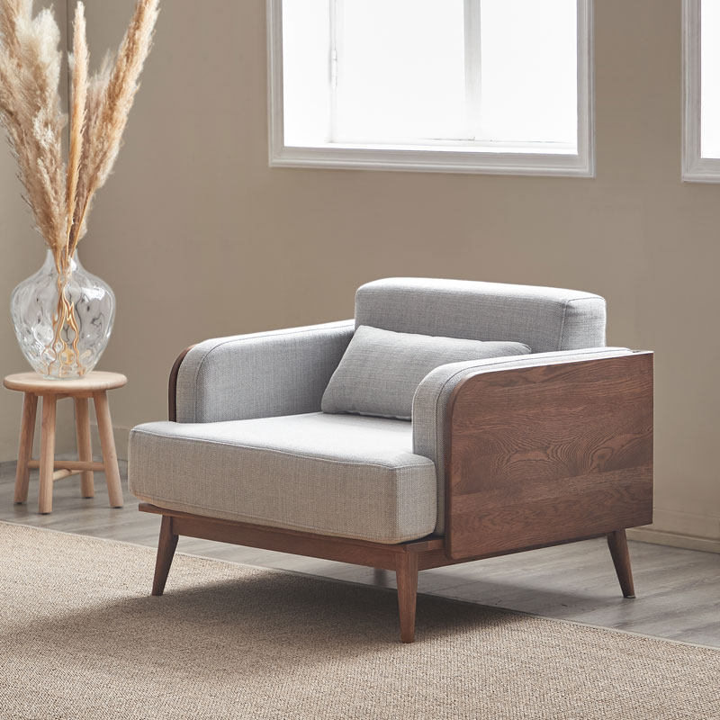 โซฟาไม้โอ๊ค 3 ที่นั่ง ย้อมสีเข้ม
